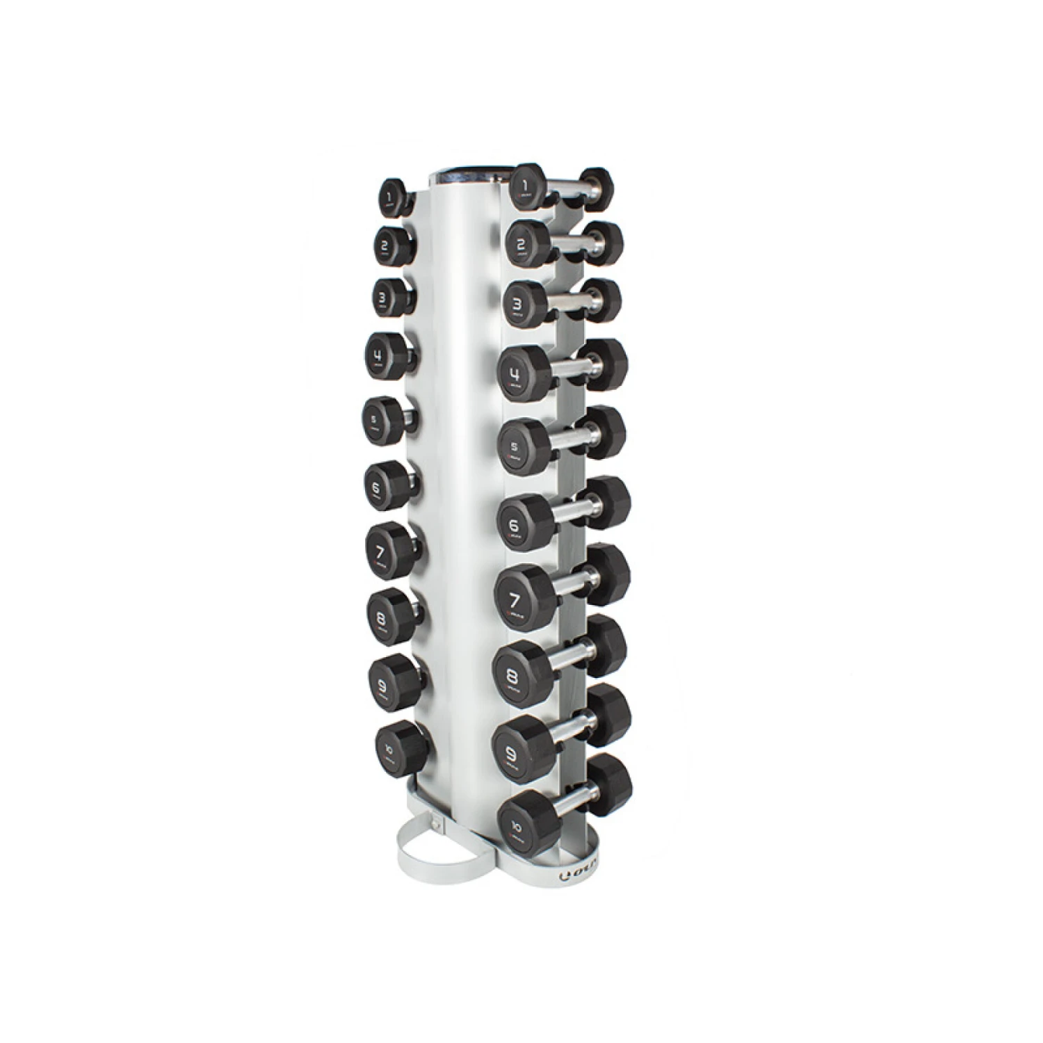 Las mancuernas no están incluidas. Este producto tiene una base de plástico sobre la que descansan las mancuernas, proporcionando una protección adicional. Diseñada para proteger tanto las mancuernas como el suelo, esta base añade estabilidad y durabilidad a la configuración del entrenamiento. Gracias a esta característica, puede almacenar sus mancuernas de forma segura y mantener un área de entrenamiento ordenada con facilidad.