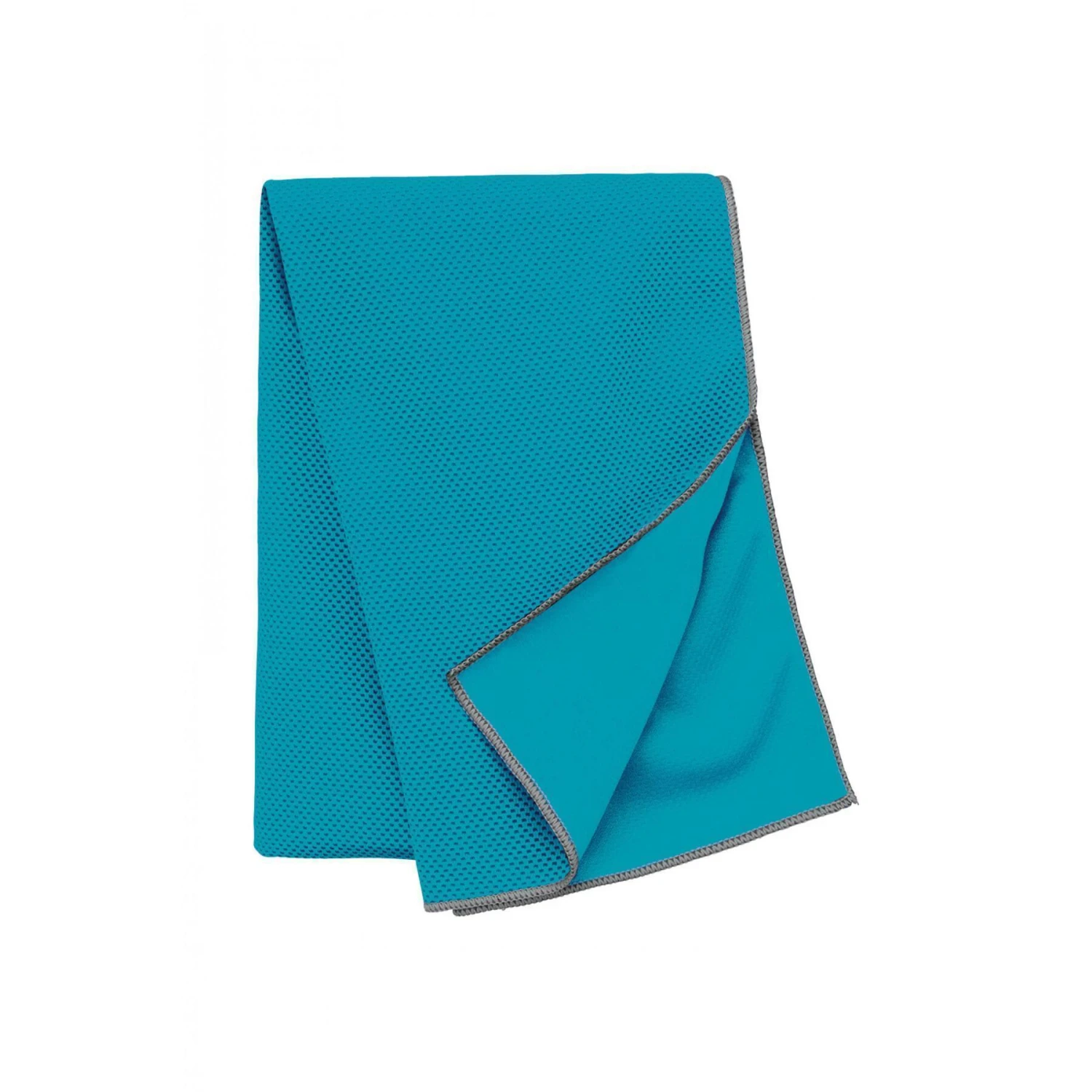 100%poliéster. Regulación de la temperatura corporal media por enfriamiento instantáneo bajo la acción del mojado/aclarado/hilado. Acabado overlock en contraste. Dimensiones 100 cm x 30 cm